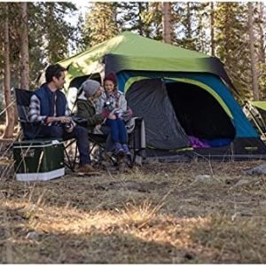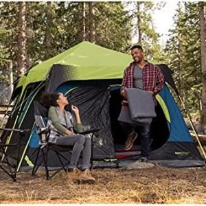 The Coleman Instant Cabin makes getting camp set up quicker and easier than ever. This instant tent has pre-attached poles that make setting up camp as simple as unfolding, extending, and securing. You can assemble the tent in about a minute and then get started on your adventure. This camping tent is designed with the WeatherTec system that features patented welded floors and inverted seams to help ensure you stay dry if it starts to rain. An integrated vented rainfly offers added protection from the rain and improves airflow without the need for extra assembly. This backpacking tent is made from rugged Polyguard 2X double-thick fabric that stands up to the rigors of the outdoors, so you can use it reliably season after season. This 6-person tent offers enough room for two queen size air beds and comes with integrated storage pockets to help you keep small items organized. And when it’s time to go home, the camping tent packs away securely in the included expandable carry bag that lets you tear away the rip strip for easy packing.