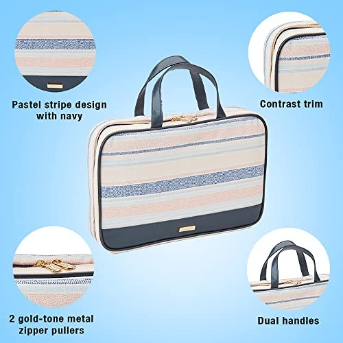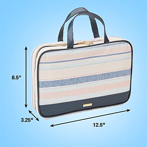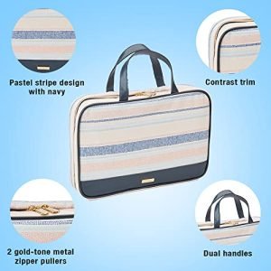 The scünci® Striped Weekender features a large, zippered interior with clear and mesh pockets to keep your essentials neatly organized and accessible.