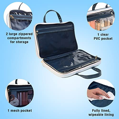 SPACIOUS COMPARTMENTS: Features a singular zipper with 2 interior pockets for larger essentials – (1) is clear & (1) is mesh – perfect for your lipstick, perfume, phone, and other essentials.