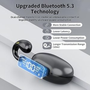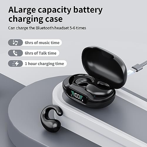 36H Playtime & LED Digital Display: Ear clip bone conduction headphones have up to 80 hours of standby time, and 6 hours of continuous play time on a single charge. The included lightweight and compact magnetic charging case provides an additional 30 hours of playtime, ensuring you never run out of music. The case can be fully charged in just 1 hour via the fast charging Type-C cable (including).