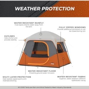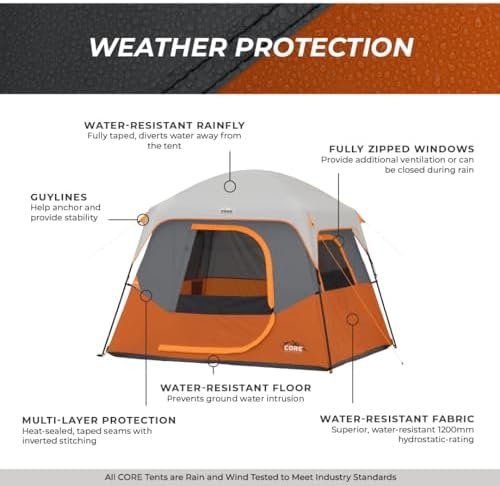 WEATHER PROTECTION: H20 Block Technology combines water-repellent fabrics with a fully taped rainfly and sealed seams to resist rain.