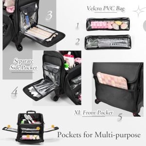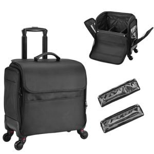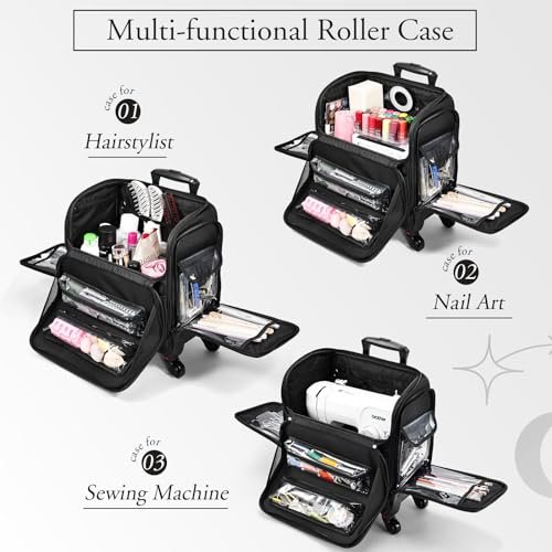 **Multi-purpose Makeup Case: Our Rolling Hairstylist Organizer Case is the ultimate multi-purpose makeup solution. Its wide opening design makes it perfect as a hairstylist traveling bag, a rolling makeup train case, or even a convenient sewing machine case with wheels. Say goodbye to messy workspaces when you’re on the go. This case is a must-have for hairdressers, manicurists, makeup artists, and beauty students, ensuring you stay organized and prepared for any job or project.