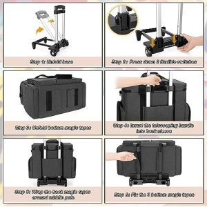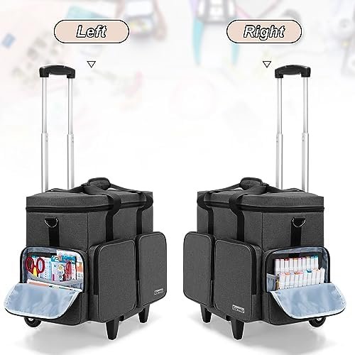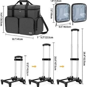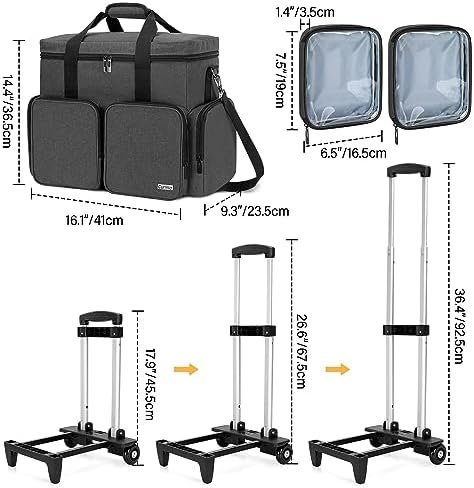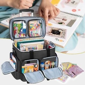 TRAVEL CRAFT BAG: Double top handles and adjustable shoulder strap make it portable to carry the bag. The upgraded trolley with an extendable handle up to 36.4 inches and reinforced legs, makes it much easier to transfer the scrapbook tote.