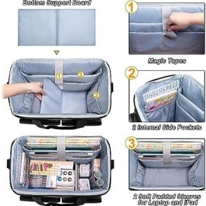 SMART DESIGN: 2 Inner padded sleeves fits for laptop up to 15.6”, iPad or large scrapbook album. Removable bottom wooden board adds more structure to the tote bag. Heavy duty nylon fabric with full padding protects the crafts away from damage.