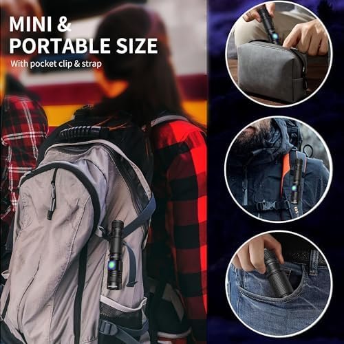 10W POWERFUL – Uses high quality 395NM UV LED source rather than the diode lampSTRONG 395NM UV LIGHT – Provides stronger 395 nm wavelength ultraviolet light, make it easier to detect.LONG-LASTING RUNNING TIME – Low consumption and high-capacity battery contains in the flashlight allows for up to 8 hours runtime.USB-C CHARGE – More convenient to get fully charged.MINI & POCKET CLIP – Portable pocket size with pocket clip, easy to carry, one-handed operation.