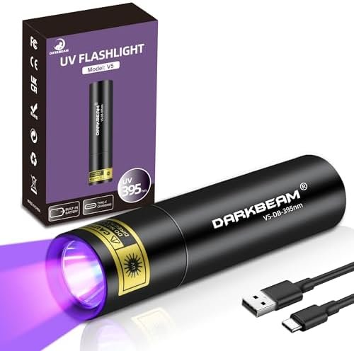 DARKBEAM UV Flashlight 395nm Light Blacklight, Portable USB -C Rechargeable, For Mineral, Curing Resin, Stains