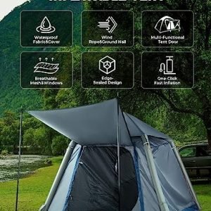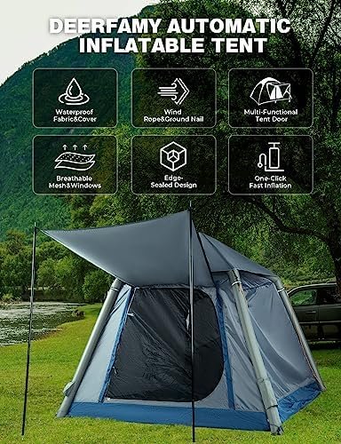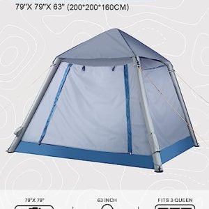 【Combining Waterproofness and Breathability】 The inflatable tent is constructed with durable and waterproof 210D/PU2000 Oxford fabric and is accompanied by a waterproof cover to provide all-around protection against water infiltration. The breathable mesh and windows can ensure breathability at the same time.