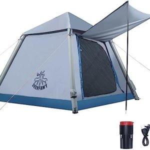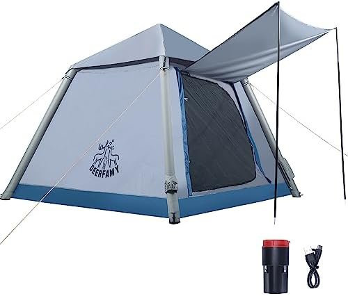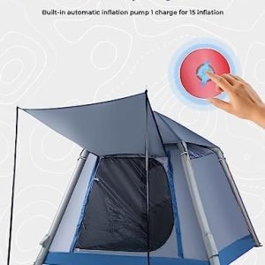 【Quick Inflation, Easy Installation】 The product includes an electric air pump, allowing you to simply take out the tent and press the button to automatically inflate it. The process can be completed in just 2 minutes. The battery is removable and rechargeable, and can inflate up to 15 times when fully charged.