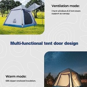 【Multi-functional Tent Door】: The double tent doors allow for easy access, and can also be propped up with the included poles to create a sunshade awning.