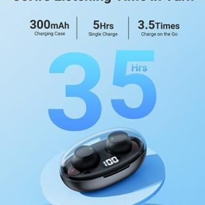 IPX7 Waterproof & Ultra-compact Design: Wireless earbuds are equipped with IPX7 water resistance, preventing damage from sweat and raindrops, thereby extending the earbuds’ lifespan. These ear buds are perfect for running and leisure activities. Additionally, the wireless headphones’ charging case is remarkably compact, only half the size of other earbud cases, saving significant space. Ear buds wireless bluetooth earbuds are easy to carry outdoors and can conveniently fit into your pocket.