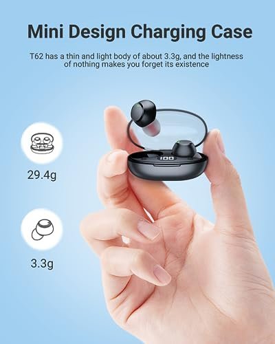 Bluetooth 5.3 and One-Step Pairing: Bluetooth earbuds utilize Bluetooth 5.3 technology, ensuring stable connections for an immediate and seamless audio experience. Whether you’re running at the gym or deeply engaged in gaming, the T62 small earbuds provide a smooth, lag-free performance. Upon initial pairing, simply remove the wireless ear buds from the charging case, select “T62” from your phone’s Bluetooth settings menu, and both bluetooth earphones will instantly connect to your phone.