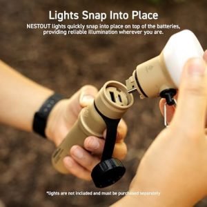 BOTTOM TRIPOD MOUNT – Batteries come with standard ¼ 20” tripod mounts on the bottom so you can attach our NESTOUT mini tripod and lights or use your own.