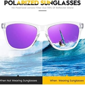 【HIGH QUALITY FRAMES 】-The clear frame is made from lightweight yet strong special material construction, which is lighter, more flexible, and more durable than ordinary frames, and can reduce the pressure on your nose. We picked ultra-light materials for glasses frame, shatterproof polarized lenses and we took care so that every edge is smoothed and polished so you’ll even forget that you wear them out in the sun.