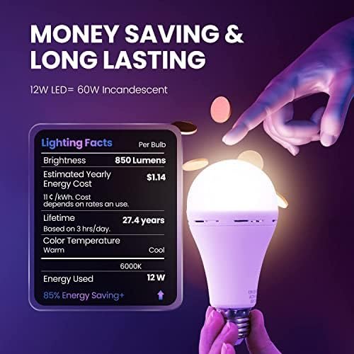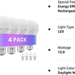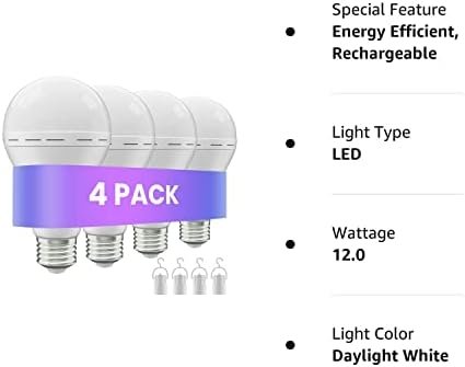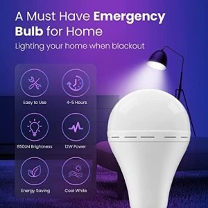 ► [ Highly Efficient Emergency light bulb]–The power of our rechargeable emergency led bulb is only 12 watt, equivalent to 60w incandescent bulbs, also offer 800-850-lumen luminance, daylight white 6000K and under the condition of same capacity of battery (1500 mAh), the lower power, the longer the work time.
