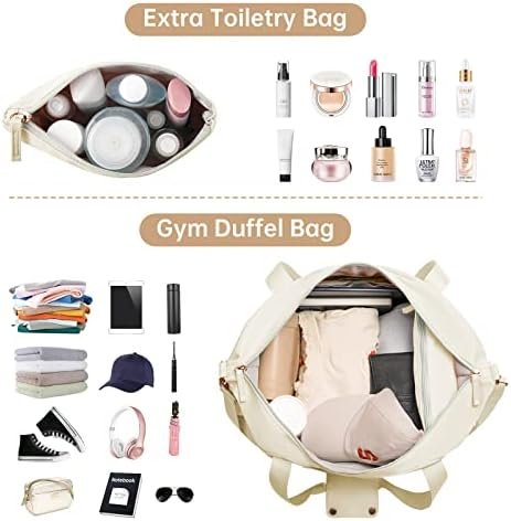 ✅【Dry Wet Separate Duffel Bag】:This duffle bag for women delivers roomy main compartment to store your clothes and items. A zippered waterproof PVC lined pocket for wet clothes or towels and swimsuits. In addition, this travel duffel bag also gives an extra small makeup bag for easy storage.