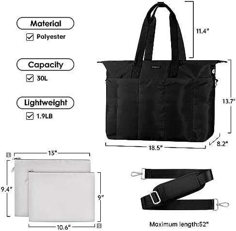 ✅【Suitable Laptop Tote Bag】The tote bag is designed with large capacity and multiple pockets. With a capacity of 30L, it can hold 2-3 days of change of clothes, cosmetics, toiletries, and computer. Multiple interior and exterior pockets ensure you have the right place for any item.