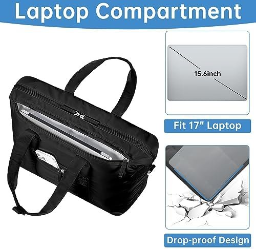 ✅【Tote Bag with 15.6” Laptop Compartment】:Padded laptop compartment securely holds laptops up to 15.6 inches, ensuring protection during travel. Constructed with high-quality materials and water-resistant fabric, this travel duffel bag withstands rugged use and protects your belongings from moisture.