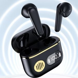 WIRELESS CHARGING AND IPX5 WATERPROOF: The charging case for these Bluetooth earbuds supports wireless charging and Type-C cable charging. The wireless earbuds are waterproof to IPX5 and the nano-coating on the earbuds prevents water and sweat from seeping in, so you can use them as sporty wireless earbuds. You can listen to music while running, working, reading, sleeping, going to meetings and more.