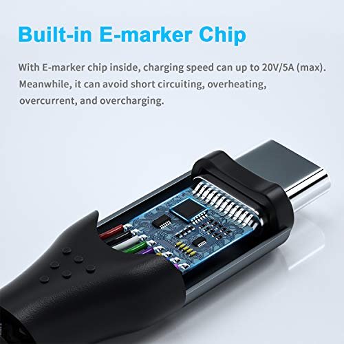 【100W Power Delivery】With E-marker chip inside, this USB C to USB C cable offers rapid charge up to 20V/5A (max). Built-in 56KΩ pull-up resistor, upgraded intelligent chip with multi protections inside. Your new 87W 15” MacBook Pro at full speed. Besides, it supports Quick charge QC 3.0 and PD rapid charging (with PD charger). NOTE: Please confirm that your mobile phones will support PD fast charge protocol.