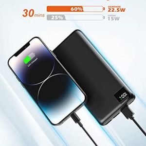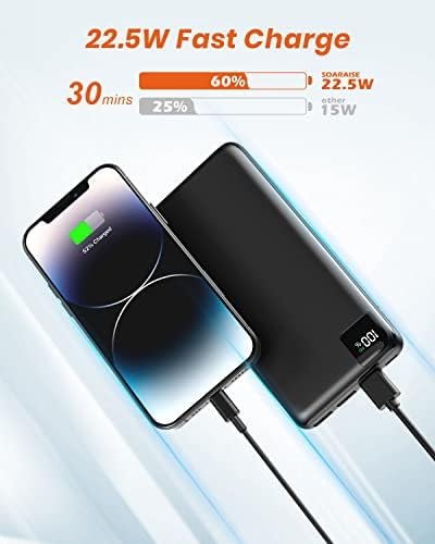 Super-fast Charging: Combined with the latest power delivery and QC 3.0 technology, the battery pack delivers an amazing rapid charge of 22.5W to supported devices, charging up to 60% in less than 30 minutes.