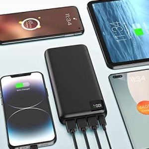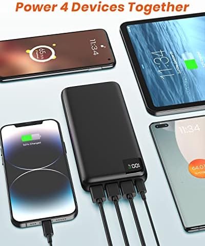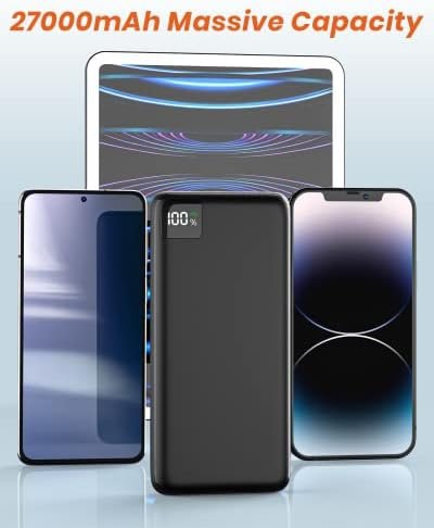 27000mAh Power Bank: The powerful portable charger packs a large cell capacity of 27000mAh to keep your phone, tablet and earbuds fully charged all day long, providing 8 charges for an iPhone 13, 5 charges for a Samsung S20 and 3 charges for a tablet.