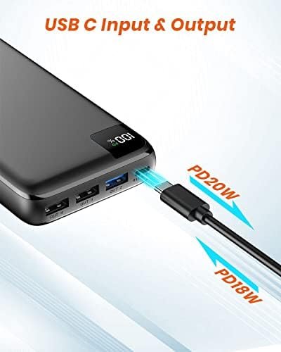 USB C Battery Backup: The USB C input/output port is rated at 20W, which fully recharges the power charger in just 5 hours. Along with the other three USB A outputs, four devices can be charged simultaneously.