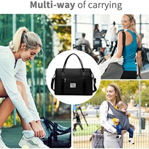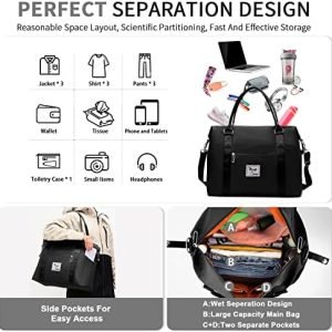 【Large-Capacity Weekender & Overnight Bag】- The weekender bag has many internal and external organizational pockets,which enable you have enough place for everything. Totally, the overnight bag can hold 8 to 10 pieces of summer clothes, cosmetics, toiletries, wallets, keys, earphones, bank power, mobile phones, Ipads, laptop, files and etc.