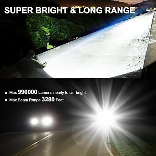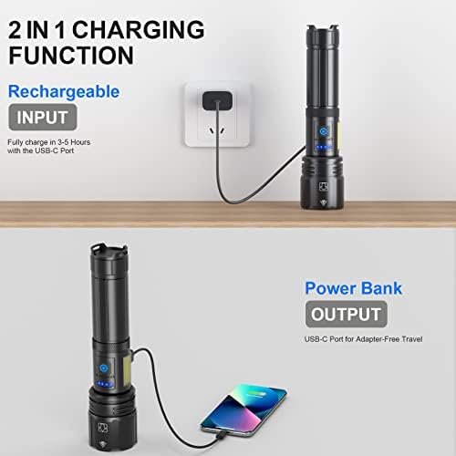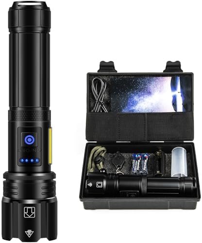 【990000 LUMENS FLASHLIGHT】Our flashlights high lumens is equipped with a upgraded chip, offering a 30% performance improvement. The flashlight has an astonishing output power of up to 990,000 lumens, which is 20 times brighter than a regular led flashlights high lumens