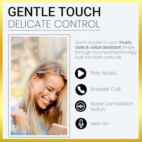 🌧️📱 IPX5 WATERPROOF AND BROAD COMPATIBILITY: In ear earbuds are IPX5 waterproof, ensuring you can revel in high-quality music without concern for rain or sweat. Featuring an intelligent touch design that is pressure-free and easy to use, you can access various functions easily without the need for a mobile phone. The in-ear wireless headphones are compatible with all Bluetooth-enabled devices, including both Android and iOS phones and tablets.