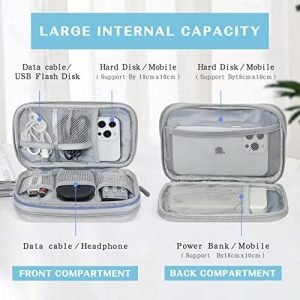 Double Layers Design: The electronics storage bag has 2 layers interior compartment with enough space to take in your cords, cables, USB drive, cellphone, charger, mouse, flash drive, and other accessories.