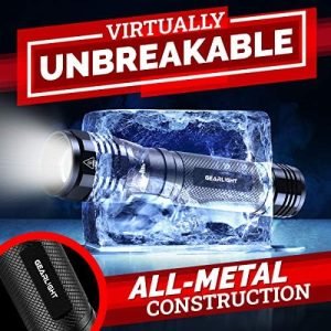 DURABLE – Made from heavy-duty military-grade aluminum, this high lumen flashlight is water resistant, weather resistant, and has even been test-dropped from a second-story building.