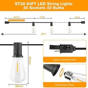 GLUROO 60FT LED Outdoor Patio Lights...