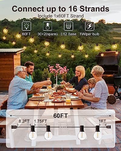this string lights for outside can have up to 40 strings connected end-to-end and can easily light up a large backyard party or camping wedding.