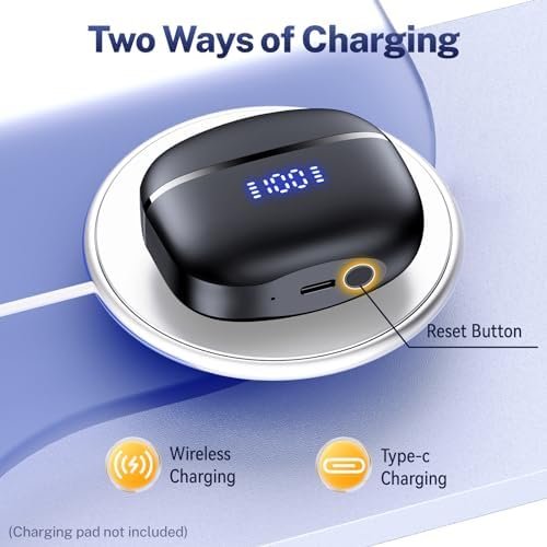 【68 Hours Playback & LED Power Display】The Earbuds provide up to 8 hours of music playback on a single charge, and up to 68 hours of playback with the charging case, for all day music enjoyment. The Bluetooth earbuds feature a dual digital display that easily monitors the battery level to ensure timely charging. You can charge the earbuds via the included Type-C connector or Qi-certified charging pad (not included).