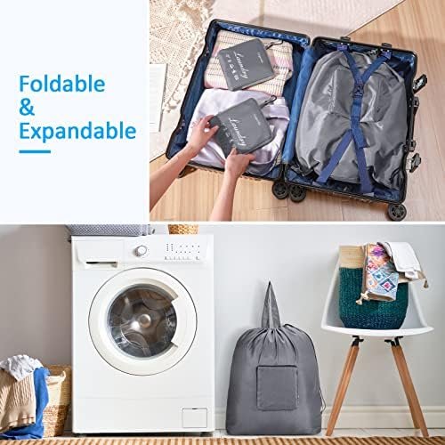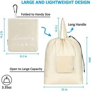 Laundry bag for travel with drawstring closure keeps all items securely inside, easy to pack, organize your clothes, also simple to carry the bag with the long handle.