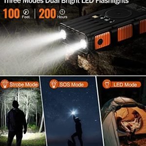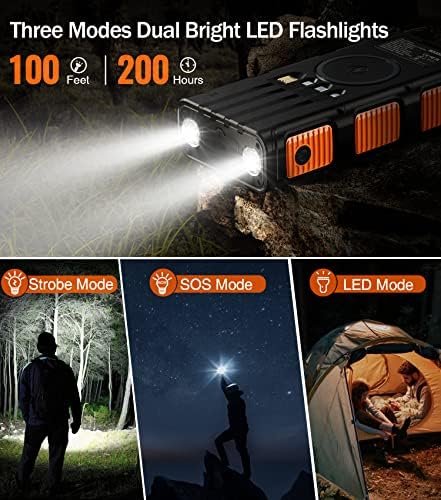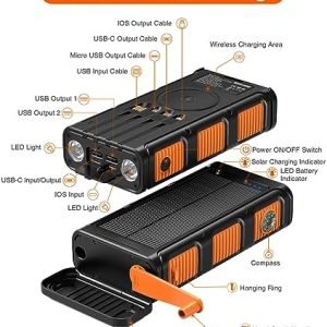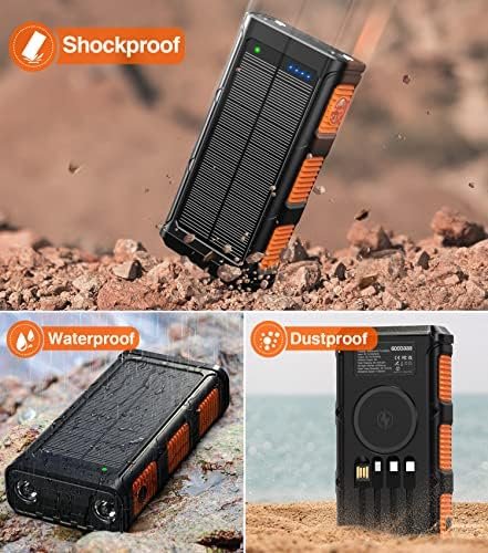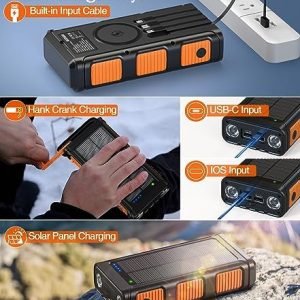 Exclusive Hand Crank Power Bank: GOODaaa adopts latest advanced technology to combine the solar charger with a hand crank generator. Simply rotating the handle on top, make it possible to provide power during an emergency or natural disaster. Besides, it has multiple fast charging input ports and cable (Recommended recharge ways). Get power at any time!