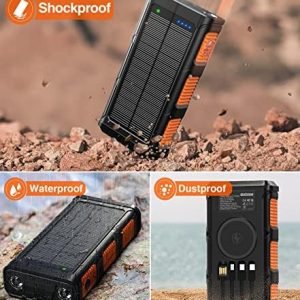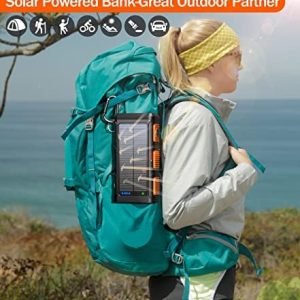 Practical Outdoor Battery Pack: This solar portable charger has dual bright LED flashlights with 3 modes (SOS/Strobe/Steady) for power outages and other emergencies. The built-in compass clearly shows you the direction. It also comes with a carabiner, which you can hang on the backpack to charge this power bank through solar energy. It’s well-made to be waterproof/shockproof/dust-proof, suitable for various harsh environments.