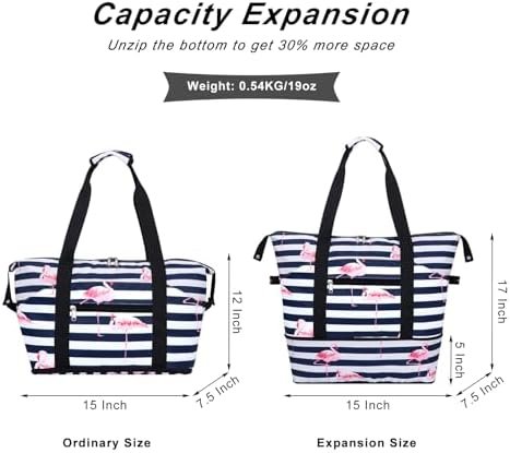 Large Capacity Weekend Bag with Expandable Bottom: With normal dimension 15×7.5x12in and expansion dimension 15×7.5x17in, you can increase or decrease the space capacity by 30% for your needs;