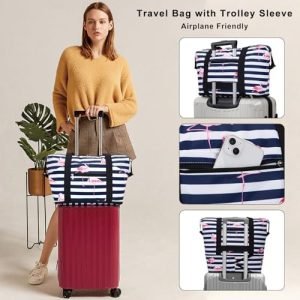 Airplane Friendly Travel Tote Bag with Luggage Sleeve: This weekender bag is designed to meet airline requirements and fits easily under the seat or in the overhead compartment. The trolley sleeve fixes the bag to the suitcase and alleviates the burden of your journey;