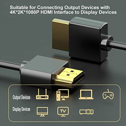 【90-Degree Angle Design】: The Canfon HD Cable features a 90-degree angle design that allows you to connect your TV or other devices close to the wall or other obstacles, reducing the risk of cable bending and damage.
