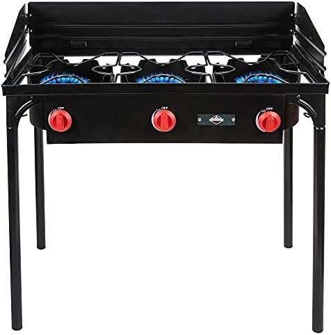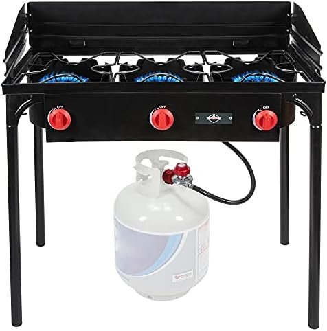 THE ULTIMATE OUTDOOR COOKING EXPERIENCE | Powerful Triple Burner Travel Stovetop Provides Amazing Portability & Cooking Flexibility for Camping, Tailgates, Backyard Barbecues, Parties, Catering, Trucking & RV Travel | Set Includes Stove, PSI Regulator [0-20], Propane Hose & Protective Case for Carrying & Stowing