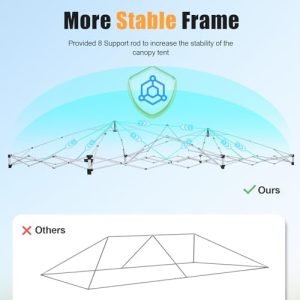 ✅【Sturdy & Durable & Stability 】Our 10×20 pop up canopy tent with durable powder-coated steel, non-rust upgraded thicken Alloy Steel Frame construction, which is beauty, strong and durable. Rust resistance and corrosion resistance. We provide 4 sandbags, 12 ground nails and 6 wind ropes, which ensure stablity and wind-resistant.
