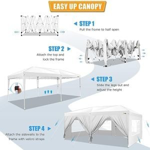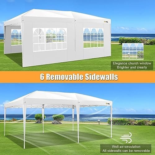 ✅【6 Removable Sidewalls】 The 10×20 canopy with sidewalls is equipped with 4 transparent church window sidewalls to allow sunlight to shine in and 2 zipper doors sidewalls to serve as entrances and increase air circulation. The sidewalls can be installed or not according to different occasions, you can hang the sidewalls as you need.