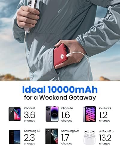 2-Pack Ultra Slim 10000mAh: Get 2 chargers at once—the thinnest 10000mAh power bank on the market, easily slip it into any of your pockets or bags. Enjoy the day’s worth of charging capacity, each enough to top up iPhone 8 3.6 times, Samsung S8 2.3 times or iPad Air once.