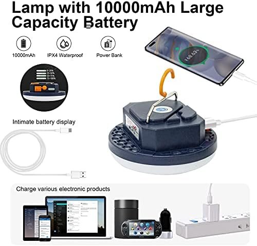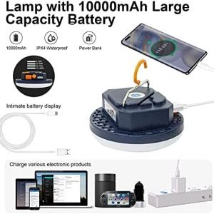 🌞【High Lumen and Long Battery Life】 4000LM outdoor camping lantern can help you keep a clear view in any dark environment. 10000mAh led rechargeable lantern can illuminate continuously for 14 hours in the high light mode and over 100 hours in the low light mode.