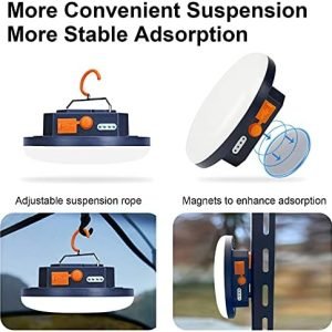 🌞【Convenient to Use】 Hands free, this camping light comes with a hook and magnet on the base, which allows you to hang the tent light upside down to get better light when lighting a large area. Please pay attention to check whether the magnetic suction is firm to prevent falling.