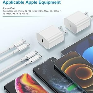 2Pack 20W USB C Charger with 2Pack 6FT USB C to Lightning cable.