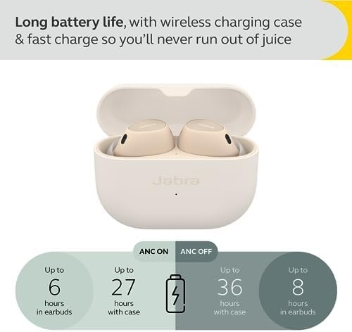 2X STRONGER NOISE CANCELLATION – These Jabra Advanced Active Noise Cancelling earbuds automatically adjusts to fit every ear canal and the environment, so you can get in the zone and block out everything, from coffee shop buzz to train noise.