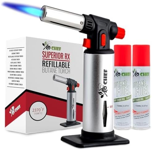 Elevate your cooking game with the Jo Chef Superior RX Butane Torch – the perfect cooking gadgets for the culinary enthusiast. With its adjustable flame that can reach temperatures up to 2,370°F, this kitchen torch, which comes with 2 butane fuel refill canisters, is the perfect tool to make restaurant-quality meals in the comfort of your own kitchen.
