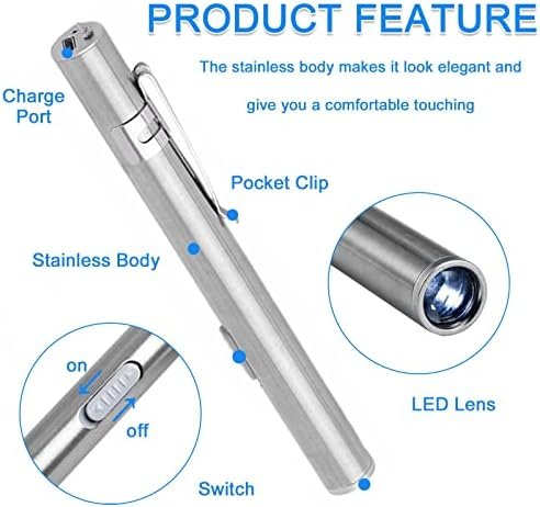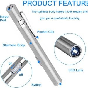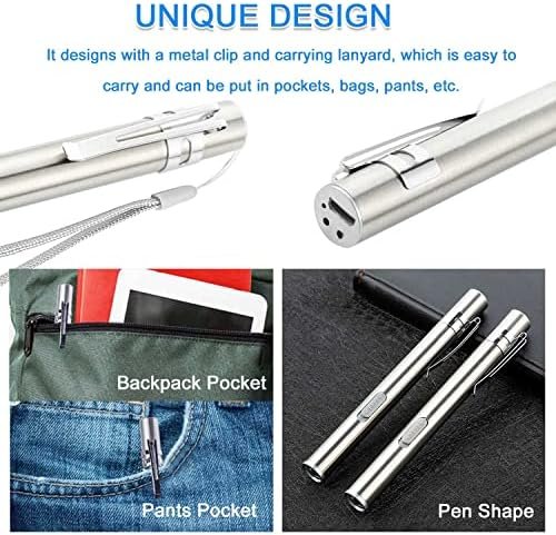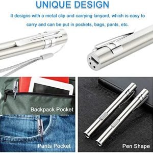 PREMIUM QUALITY – The super bright penlight is made of durable stainless steel and white light LED bulbs, which features with wear resistance, high brightness and good holding feeling
